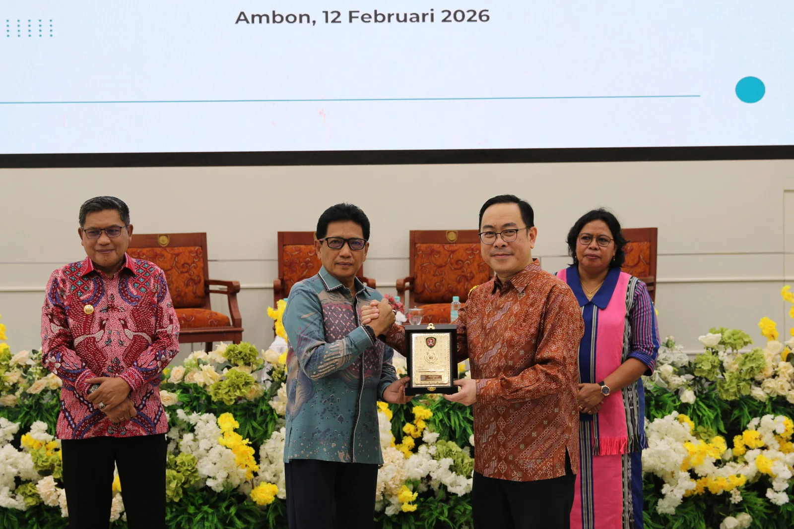 Sekretaris Daerah Provinsi Maluku, Sadali Ie, bersama Direktur Eksekutif Institut Leimena, Matius Ho, serta Kepala Dinas Pendidikan dan Kebudayaan Provinsi Maluku, Sarlota Singerin, dan Wali Kota Ambon, Bodewin Wattimena.